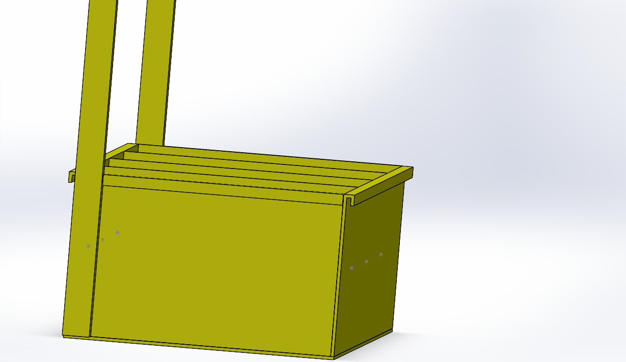 A digital 3D model of a yellow-green structure with two sloped supports attached to a large flat rectangular panel. View fullsize