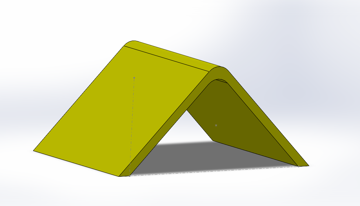 3D model of an A-frame tent with a yellow cover, set on a flat surface.