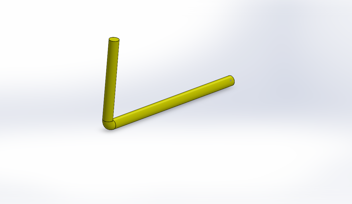 3D model of yellow L-shaped pipe with two joints, on a white background.