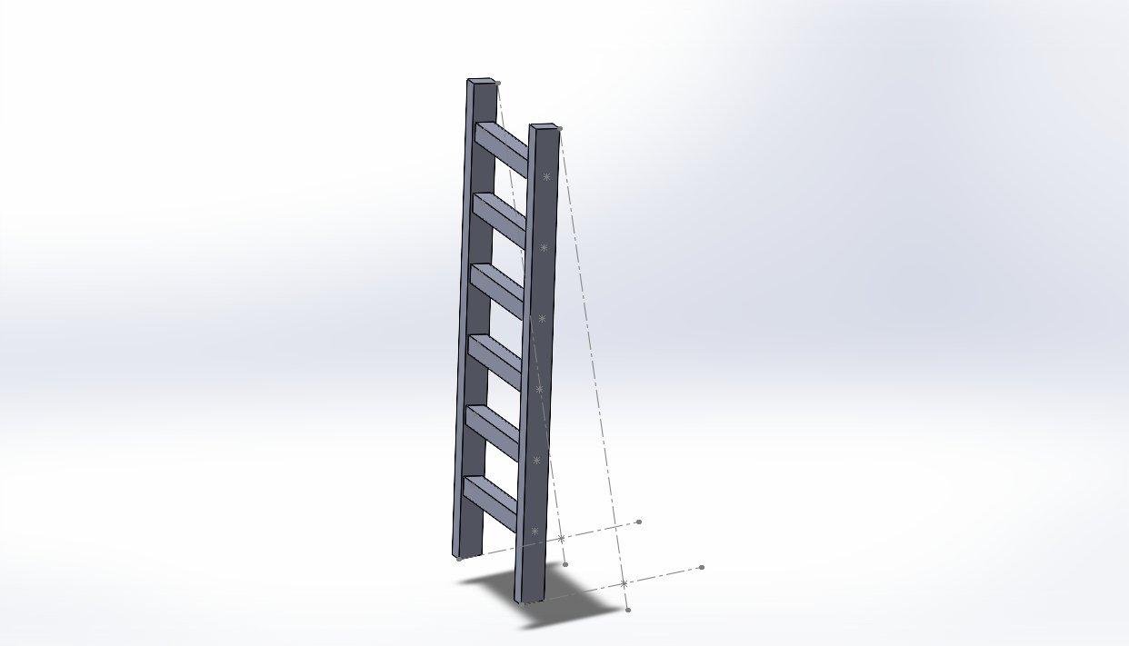 3D model of a wooden ladder with four rungs, standing upright with support cables attached.